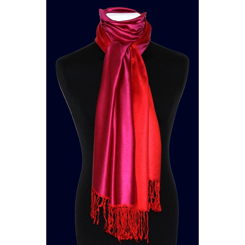 Lorenzo Cana - 78171 Women's Pashmina Reversible Scarf 70% Silk and 30% Viscose Scarf 70 cm x 190 cm Two Tone Red Scarf, Red Orange Pink Berry