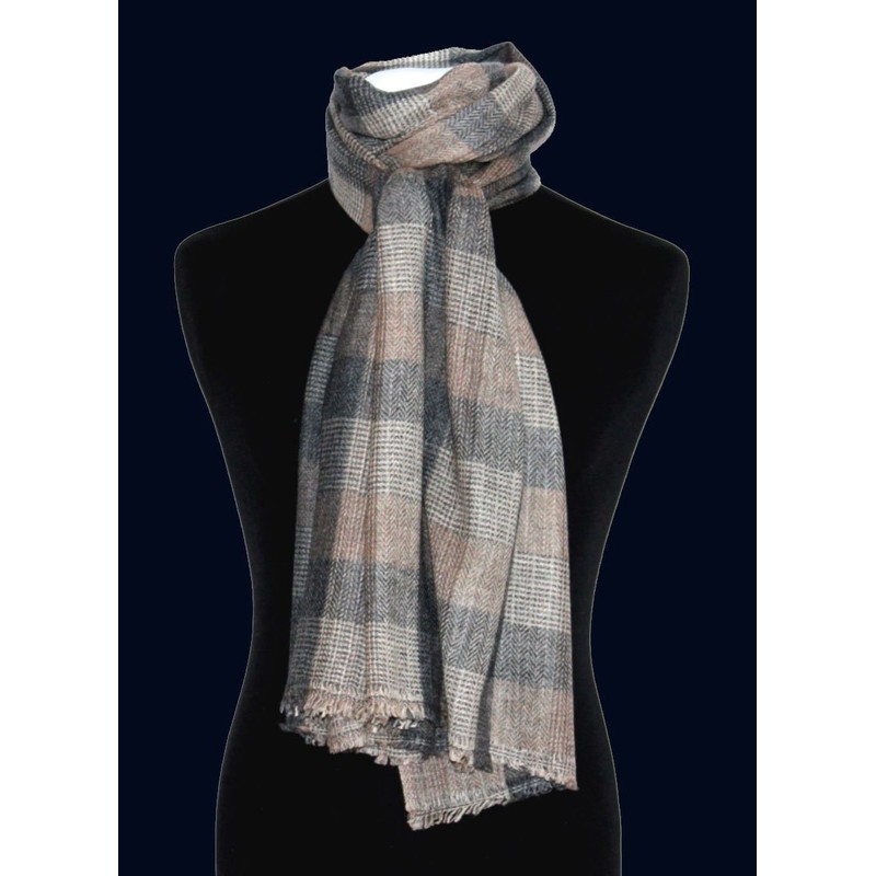 The stylish pattern of the scarves is elaborately handmade from undyed, natural cashmere yarns in different shades.