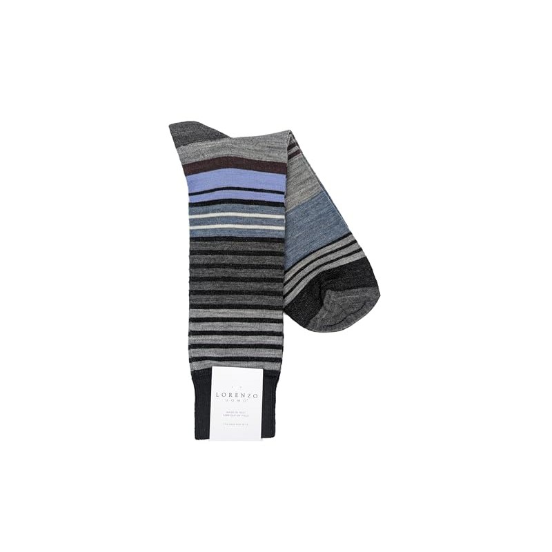 Lorenzo Uomo Multiple Stripe Merino Wool Blend Socks, 10-13, Black