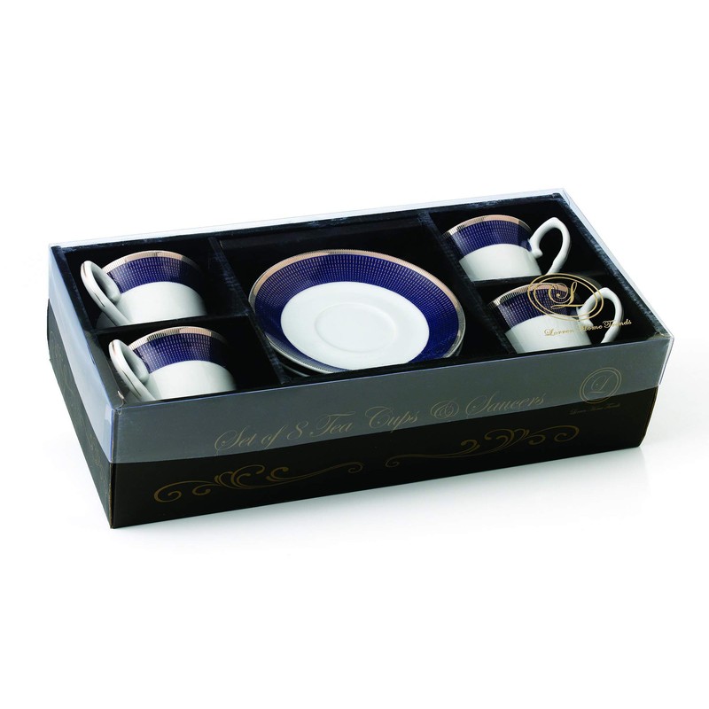 Lorren Home Trends Midnight-4 Cups and Saucers, One Size, Blue