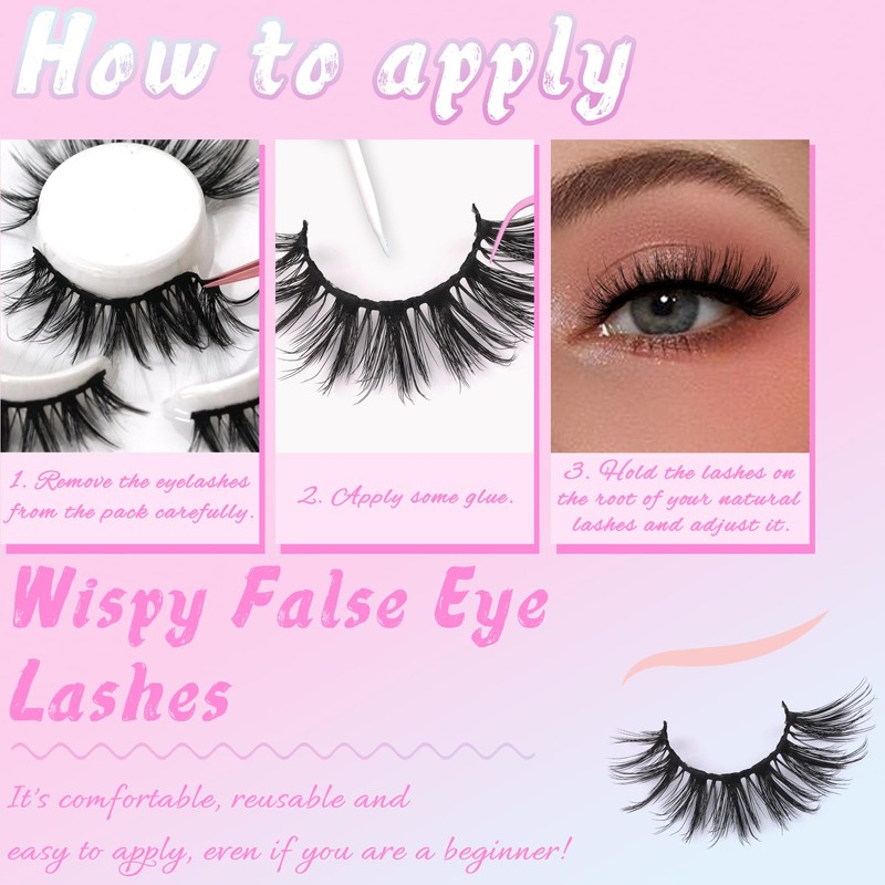 - WISPY & CAT EYE: These false eyelashes are delicate cat eye style, which are fit for the most people. Besides, they are fluffy and have a 3D effect, which will make your eyes vivid, luxurious and charming.