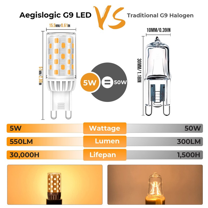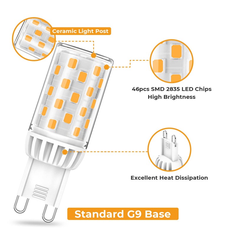 - 【Installation & Customer Service】The standard G9 base fits all your ordinary halogen bulbs perfectly, simply install this bulb directly. We offer a 2-year guarantee. If you have any questions about our G9 dimmable LED bulbs, please email us. We will try our best to solve all your problems.