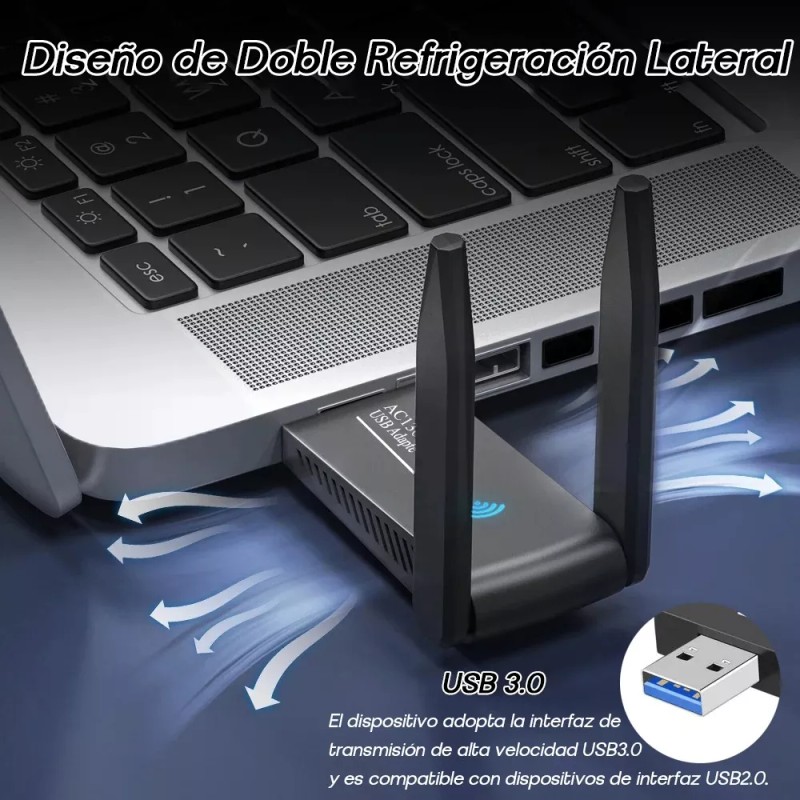Lostrain Adaptador Antena Wifi Inalámbric Usb3.0 1300mbps Doble Banda