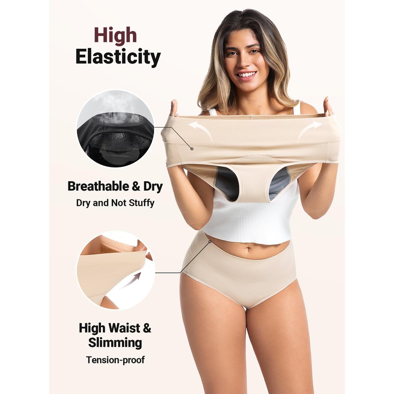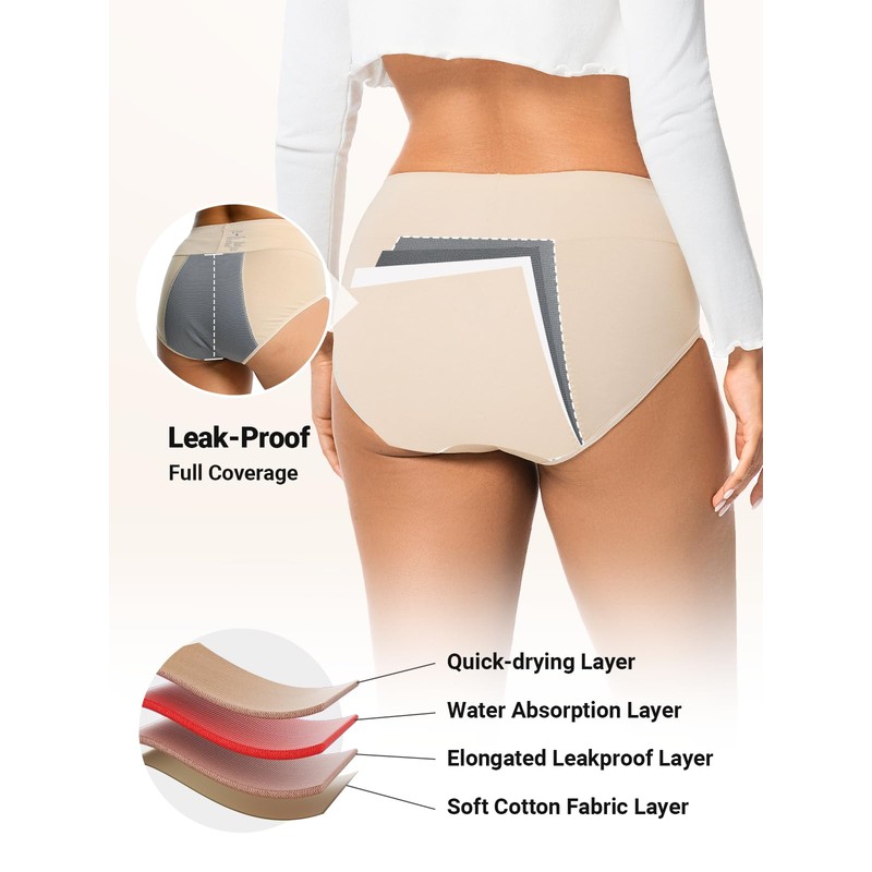 Loswie Loswie Incontinence Underwear for Women, Quick Dry Postpartum Leakproof Cotton Underwear Stretch Hi-Waist Panties