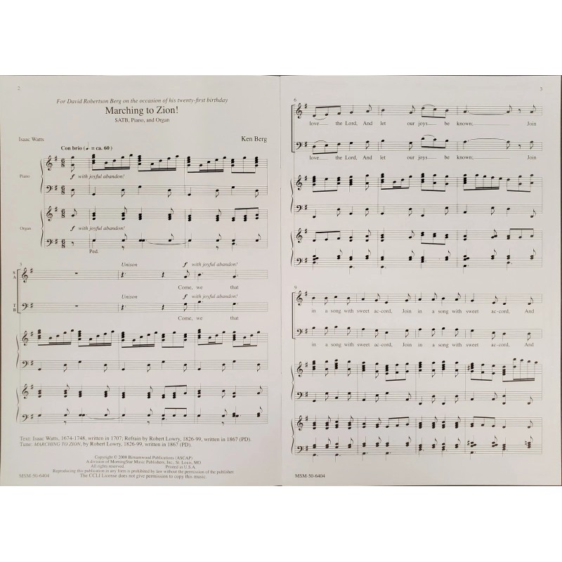 *LOT OF 15* MARCHING TO ZION - Ken Berg - Morning Star - SATB Octavo