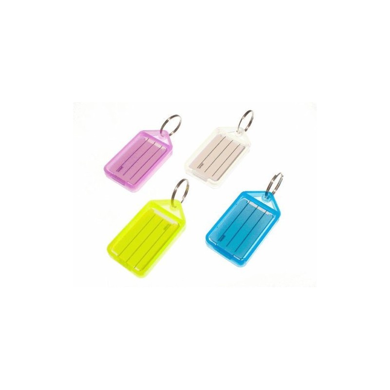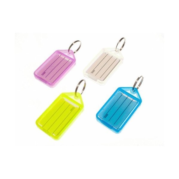 Lot von 40 Key Ring 50mm x 30mm Tag + Adressaufkleber Split Key Ring