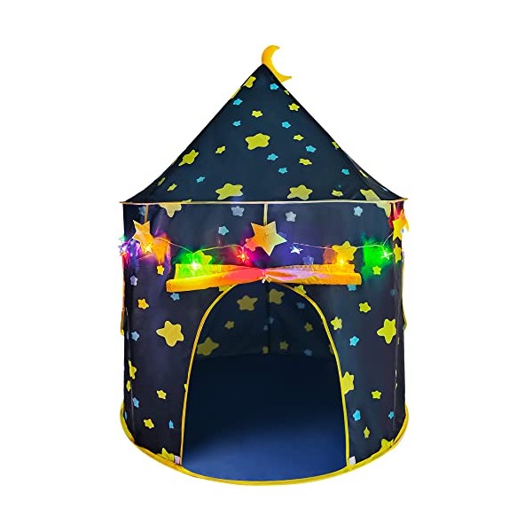 - LED LIGHTS: Our pop-up kids play tents includes 9.8ft of colorful star string lights, FCC certified, perfect for a fun and dreamy play night (batteries not included)