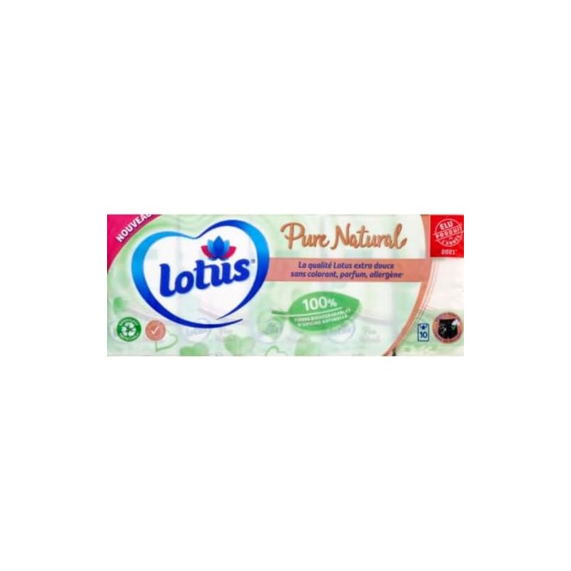 Lotus Pure Natural 10 Handkerchiefs with 9 Tissues