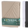 - SUPERIOR QUALITY & 100% PURE COTTON Our sheets that bear the signature of Lotusein are made from 100% natural cotton and offer you a comfortable and luxurious sleeping experience with their soft jersey texture.