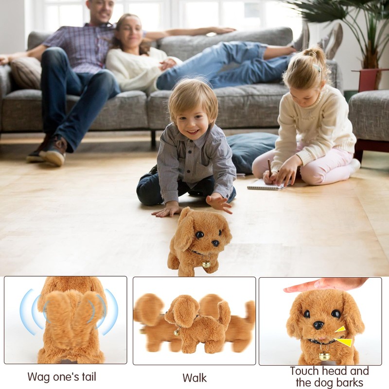 - Electronic plush puppy for children: the cute electronic pet can walk, bark and waggle its tail, which can behave like a real puppy. Dog running and barking toy is a perfect gift for any younger child, it will have hours of interactive fun with this super cute toy.