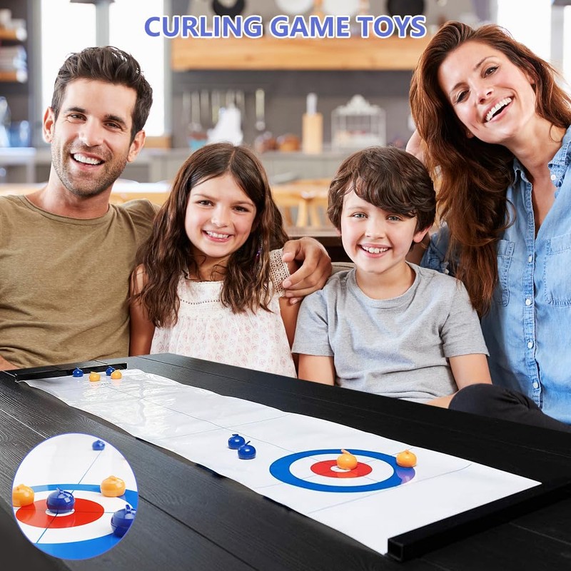 - 【High Quality Materials】Our tabletop curling game is made of high quality ABS material, with a smooth surface that won't harm children's hands. At the same time, the curling can slide smoothly on top. Moreover, our curling is not just a simple plastic model, but also has ball bearings inside. They can simulate the relative weight of stones well and make the sliding process smoother. Let you have a more realistic curling game experience!