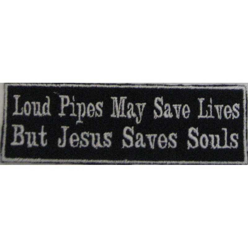 Loud Pipes May Save Lives But Jesus Saves Souls. Motorcycle Biker Patch