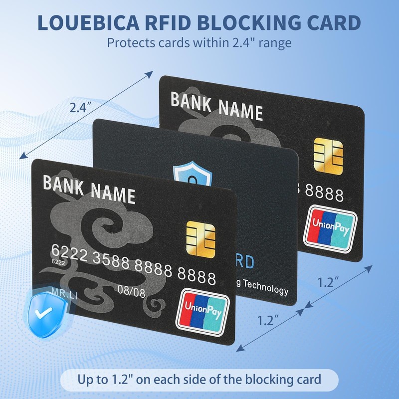 LOUEBICA 4 Pack RFID Blocking Card, Contactless NFC Debit Credit Card Passport Protector,Entire Wallet Purse Protect