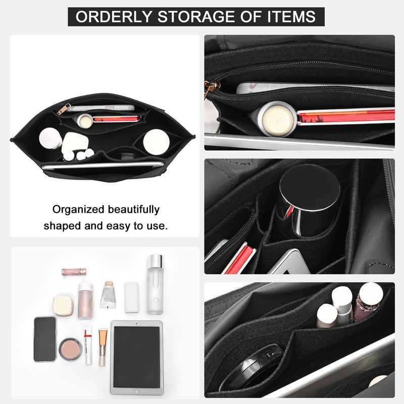 - 💞HIGH CAPACITY-MULTI-COMPARTMENTS: Featuring 7 compartments,Two of the pockets, which are exterior pockets, are for storing large items,Five pockets remain, one cup pocket opening and one zippered pocket(Made with high quality metal zipper head for long lasting use)You could store your mobile phone, wallet, cosmetics, glasses and other personal items in purse organizer insert, which is easy to switch bags throughout the day without having to reorganize.