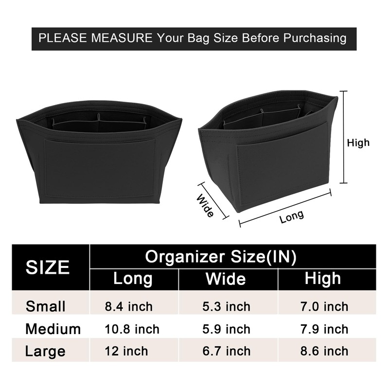 - SIZE OF THE FELT PURSE ORGANINZER INSERT - Small: 8.4" (L)*5.3" (W)*7.0" (H) , suitable for Large Size of long handle of Le pliage handbag, or similar size Tote Handbag,It will be more suitable if it is LESS than 0.5-1 inches to ensure a perfect fit,Please comfirm your bag size before purchasing again, thanks.