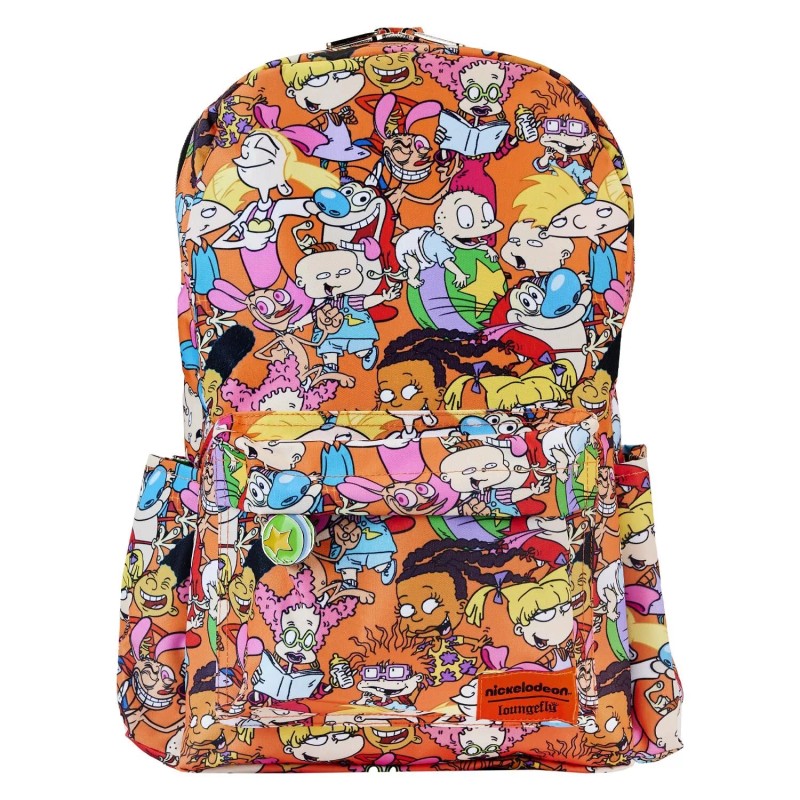 This fun and colorful Nickelodeon Retro backpack is perfect for teens and adults. Featuring a vibrant print of everyone's favorite cartoon characters, this backpack makes a statement wherever you go. Spacious enough to hold all your essentials for school or play, the main compartment easily fits an iPad, notebooks, lunch and more. External pockets provide extra storage for snacks, toys or gear. Adjustable padded shoulder straps ensure comfortable carrying all day. Zippered closure keep belongings secure. At 12 inches high by 10 inches wide, it's the right size for little adventurers to tote their treasures in style!