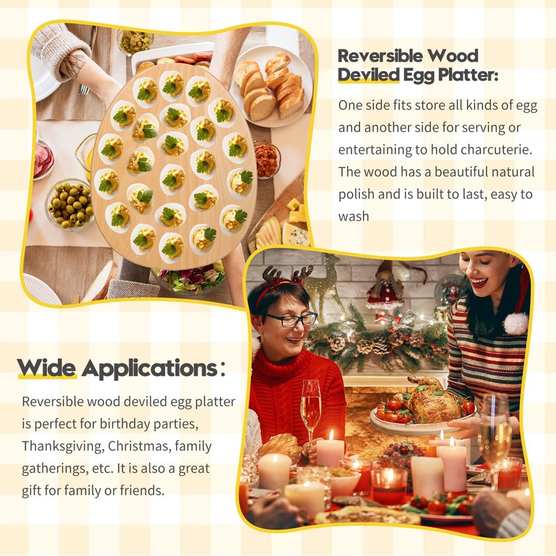 - Versatile Usage: our wooden deviled egg tray as a unique table centerpiece. It is decorative may it be a classic pickled egg or a combo with other starters, our egg plate for deviled eggs will not disappoint in giving your dish an upscale look. It will be your go to during birthday parties, Easter, Thanksgiving, Christmas, and all of your family, friend get together