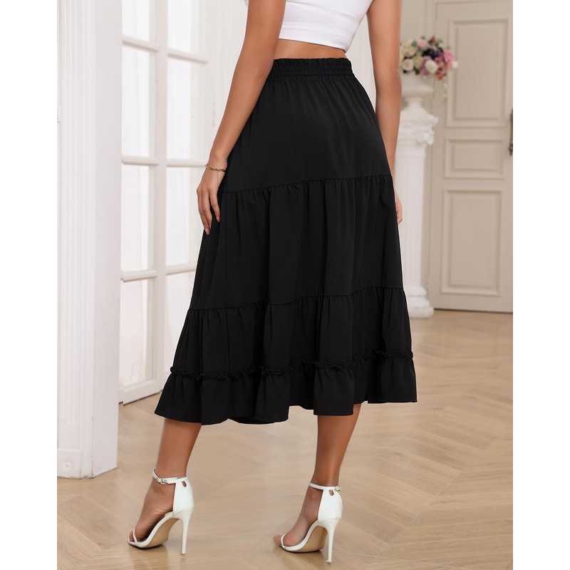 - 【High-quality Fabric】 The womens midi skirt is made of polyester fiber fabric, which has strong wrinkle resistance and excellent shape retention properties. The ruffle skirt women is not prone to wrinkling and can quickly regain its smoothness even after being worn or folded for a long time, making it very easy to care for. It is easy to wash and dries quickly, and it is skin-friendly and breathable, ensuring a comfortable feeling and allowing you to enjoy the coolness in summer