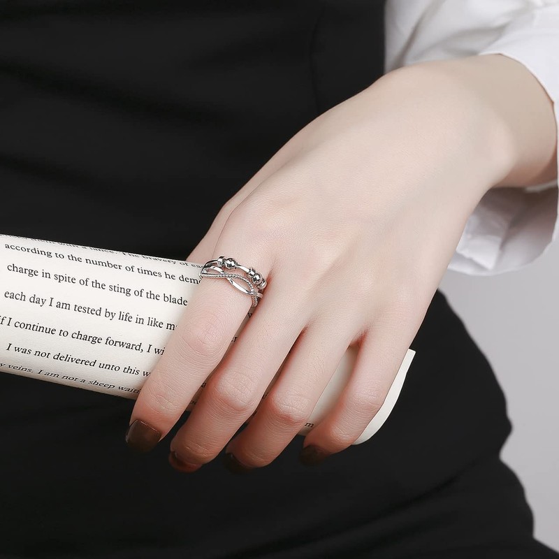 Loutade Silver Anxiety Rings, 925 Sterling Silver Women's Anxiety Ring, Freely Adjustable Anti-Anxiety Decompression Rings, Infinity Spinner Fidget Ring with Beads Band, Unisex Fidget Ring, Fidget Rings