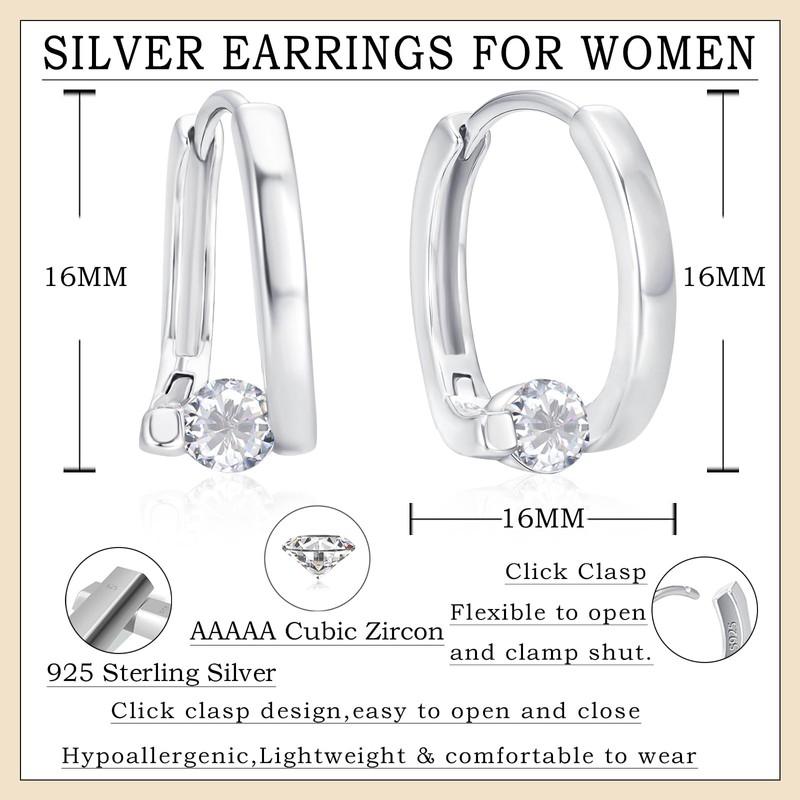 - Hypoallergenic earrings: silver hoop earrings are made of the finest 925 sterling silver with AAAAA cubic zirconia. High polish keeps silver women's earrings shiny forever. 925 silver earrings for women are hypoallergenic and nickel-free, suitable for almost all sensitive ears. The clasp of the silver earrings is stable and safe, easy to open and close. So you don't have to worry about losing the 925 silver hoop earrings.
