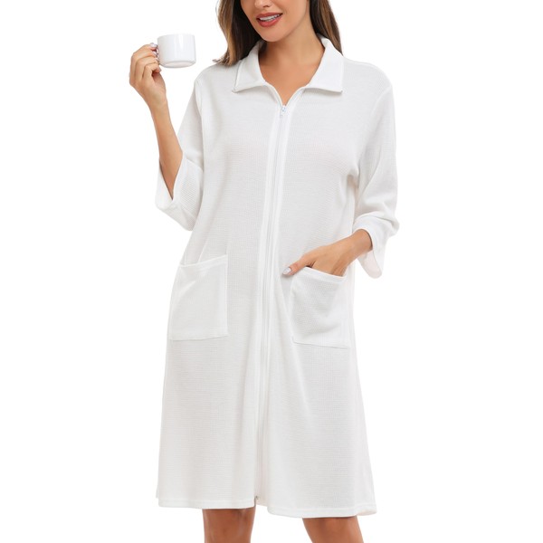 Lovasy Summer Ladies Zip Dressing Gowns,White,S