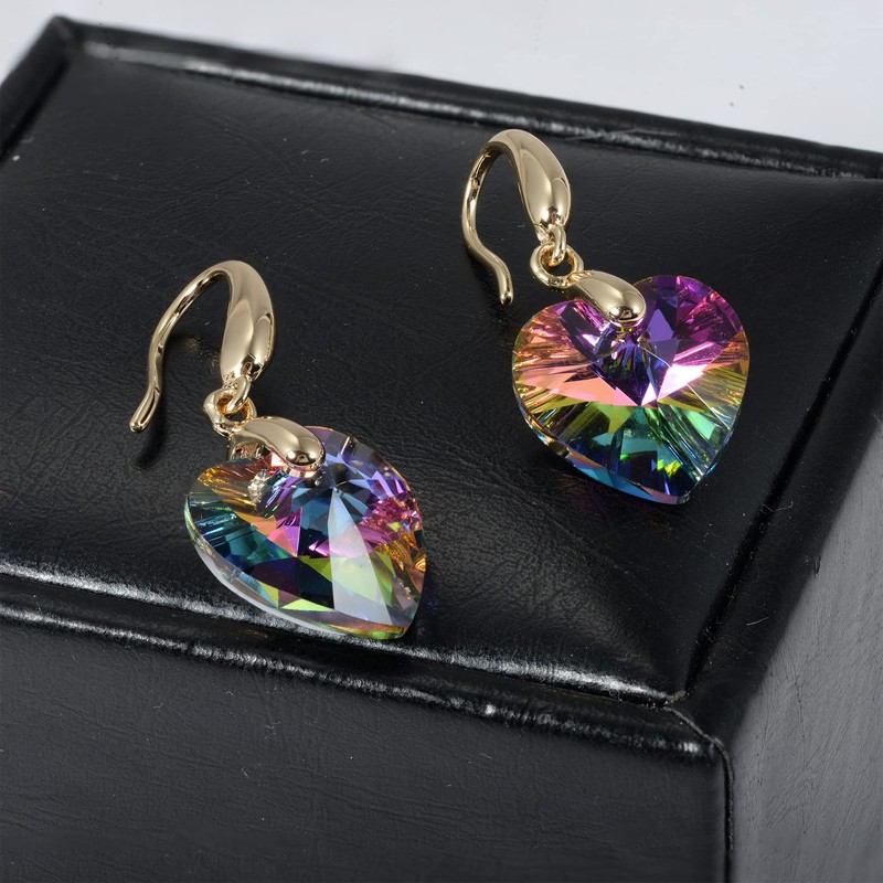 Love Heart Austrian Crystal Earring For Women,14K Gold Plated Hypoallergenic Drop Earrings For Sensitive Ears, Crystal, Cubic Zirconia
