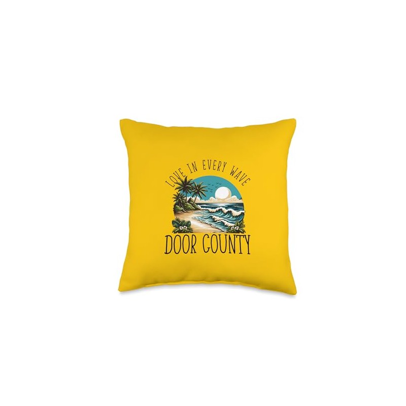 - Do you love tropical beaches with palm trees and crashing waves? Then this design with ''Door County - Love in every wave'' perfectly captures the beauty of the ocean at sunset!
