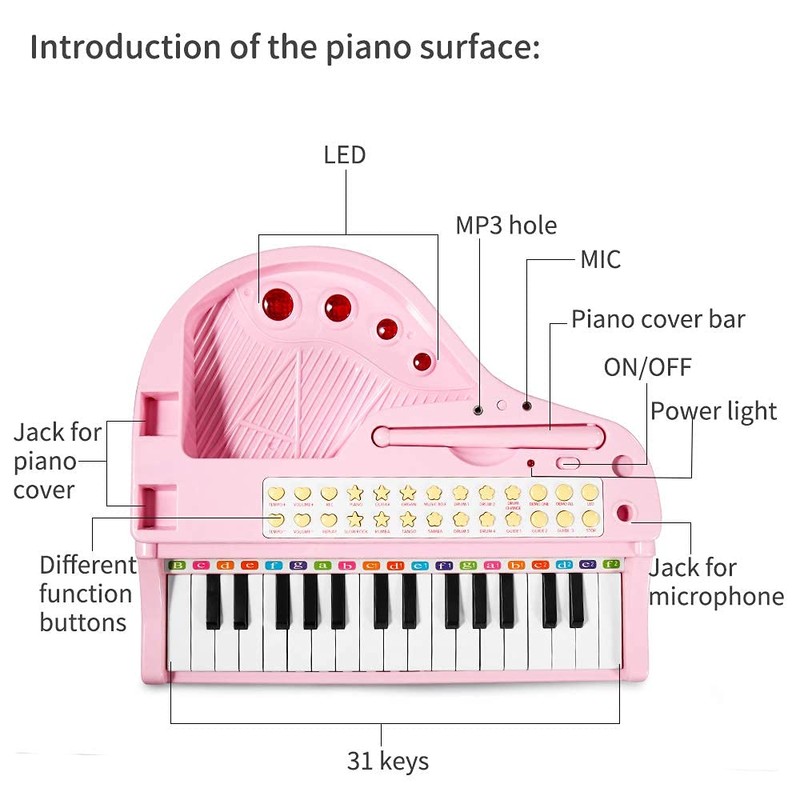- 31-KEY DESIGN-with Microphone & different functions with Volume Control, allow you and your baby to immerse in your music world