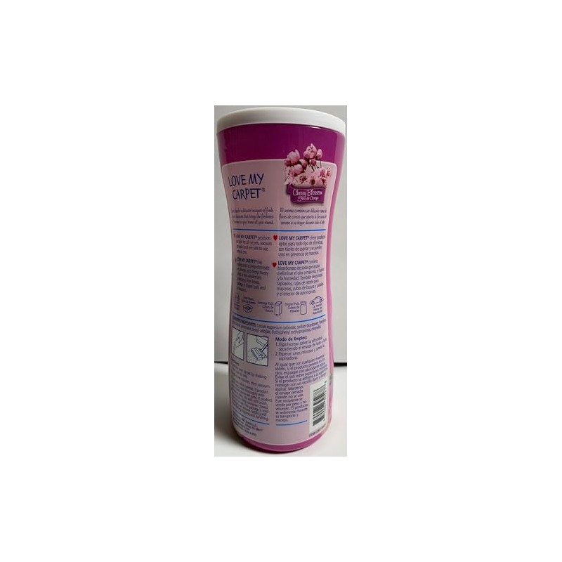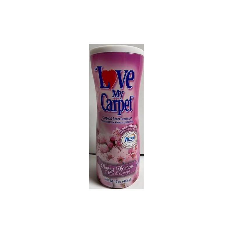 - Cherry blossom Love My Carpet 2-in-1 Carpet & Room Deodorizer, scented, 2 pack. Freshen all your carpets while leaving the air clean and fresh, too! Bring the lush scent right into your home to fight carpet odors. Safe for all types of carpets, it eliminates problem odors and is safe to use around pets. It also can be used to freshen and deodorize upholstery, diaper and garbage pails, cat litter boxes, and car interiors. Love My Carpet 2-in-1 Carpet & Room Deodorizer Lavender scented, Two Pack, 17 oz Safe for all types of carpets Eliminates problem odors and is safe to use around pets Brand: Love My Carpet Color: cherry
