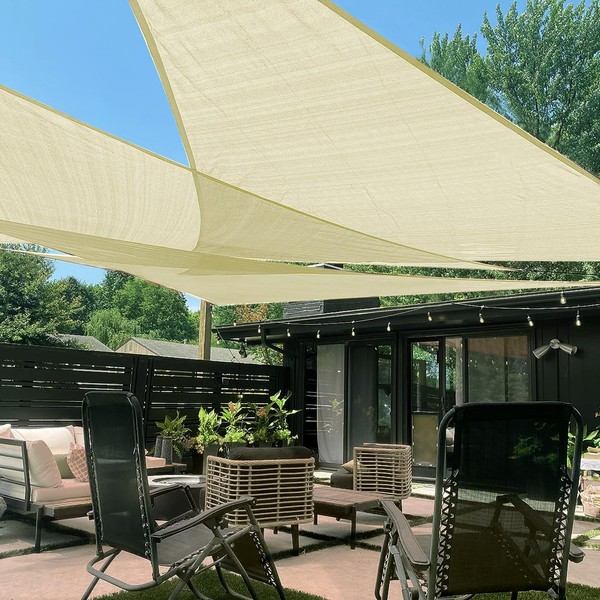 LOVE STORY 13' x 13' x13' Triangle Sun Shade Sail Sunshade Sail UV Block for Patio Garden, Butter Cream