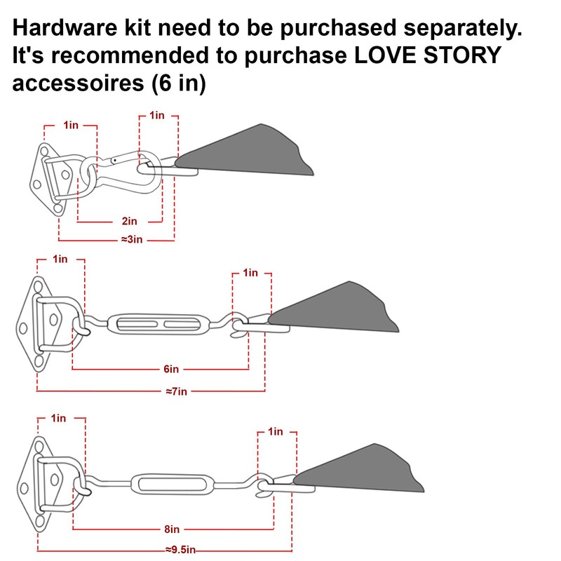 - 【About Installation】Please refer to the diagrams before purchasing. To ensure you buy the correct shade sail, you need to leave 0.5-1 ft of space for accessories to avoid buying an oversized shade. In addition, due to the characteristics of this fabric, there may be a tolerance of ±4 inch from the outer edge of one D-ring to the outer edge of the other D-ring