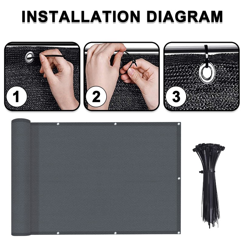 - (Breathable Material &90% Blockage )Made with 100% 175 GSM new high density polyethylene(HDPE) material--no recycled materials used,more healthy and safe. Allow breeze and light pass through for better comfort space. Commercial solid fabric can achieve 90% blockage to meet your requirement.Deck Shield Cover is perfect for Backyard Deck, Patio, Balcony Pool, Porch Railing.