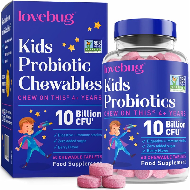 - Award-Winning Kids Probiotic Chewables – Lovebug Chew On This is a daily supplement for ages 4+ that helps to build a strong, healthy gut flora, laying the foundation for your child’s overall well-being*