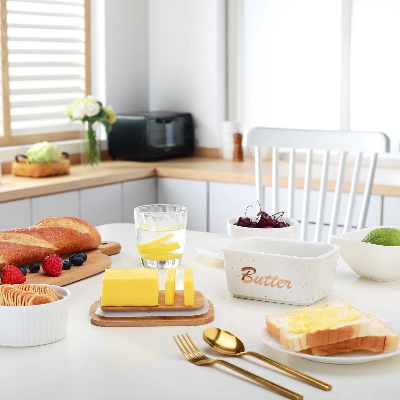 Microwaveable - Insulated microwave butter dish can be heated in oven. There is no need to handle greasy wrappers. Ceramic butter dish can be used baking plate and butter box.