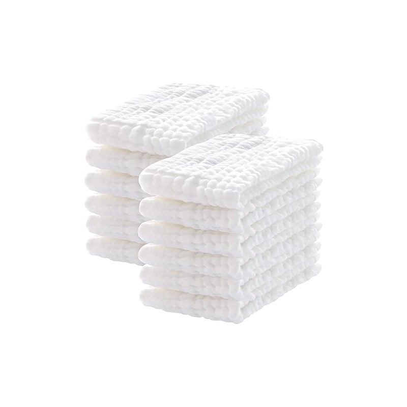Lovely Care Lovely Care 12 Pack Muslin Burp Cloths 100% Cotton Muslin Cloths Large 20'x10' Extra Soft and Absorbent Baby Burping Cloth - White