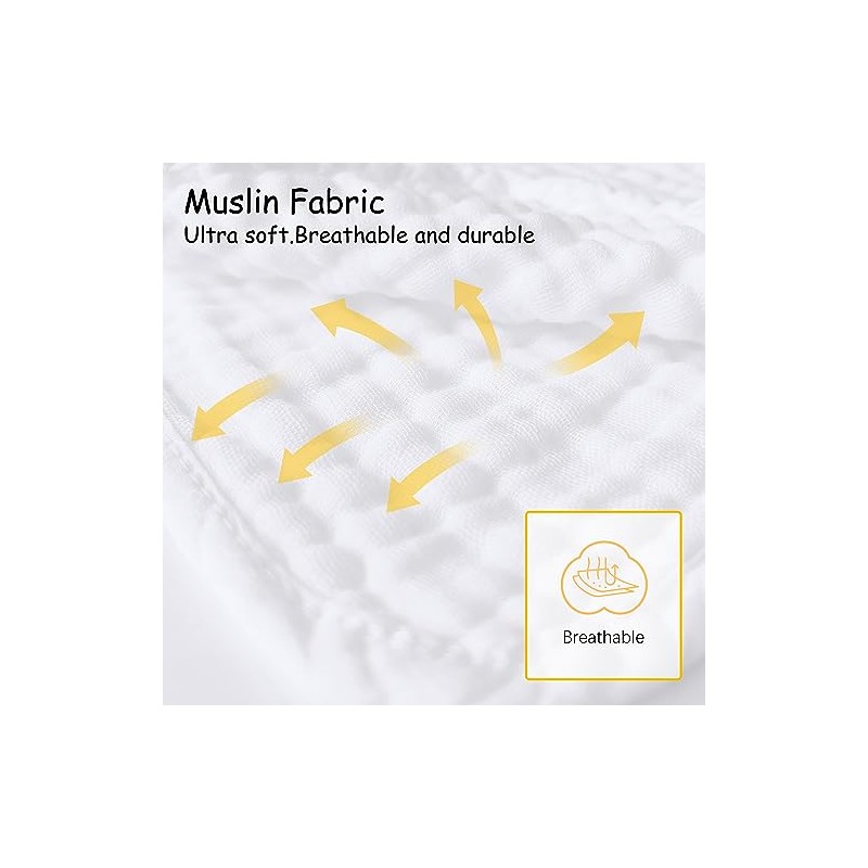 - ESSENTIAL ITEM- Our multi-functional muslin burp cloth, measuring 20x10 inches, is perfect for all your needs. Made of 100% pure natural muslin cotton, it is soft, breathable & skin-friendly making it ideal for a baby's sensitive skin.