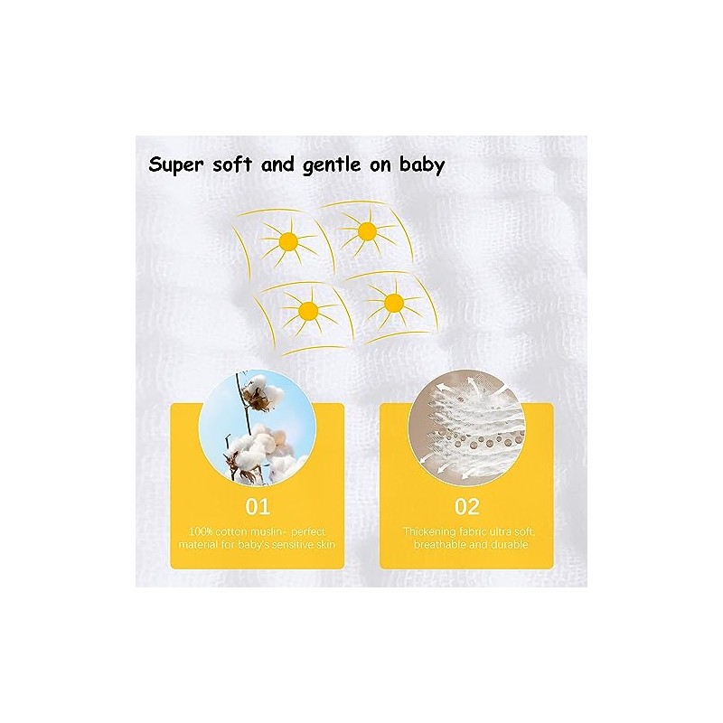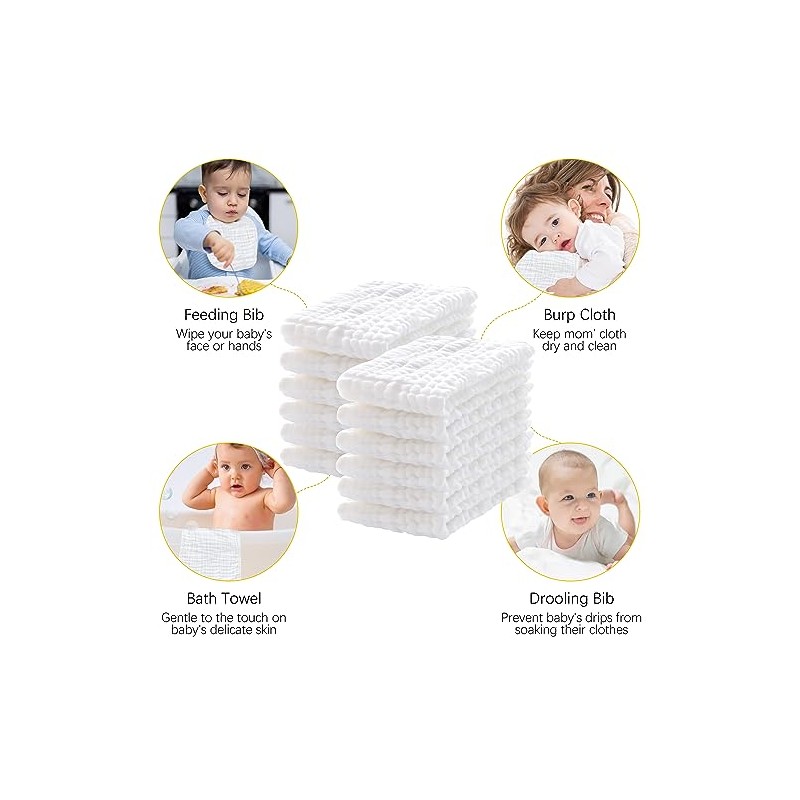 - ULTRA ABSORBENT- These washcloths are perfect for catching spills and drools, thanks to the ultra-absorbent 100% cotton muslin fabric. It feels just like touching a soft cake, truly a baby essential item.