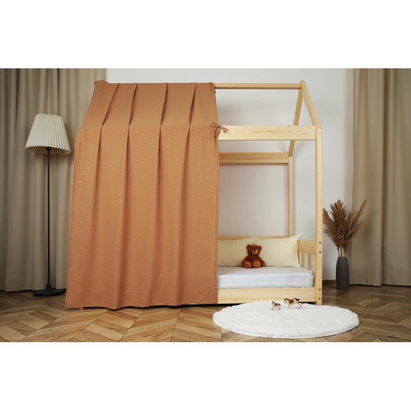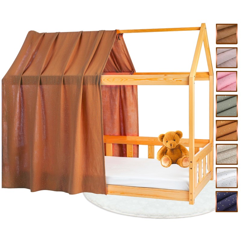 Lovely Hippo House Bed Canopy - 100% Cotton - Muslin House Bed - Bed Curtain Children's Bed - Canopy Bed Curtains 90 x 200 cm (Ccoa / Gold, 120 x 370 cm (Set of 1))
