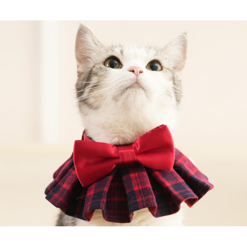 Lovelyshop pet Serial Red Plaid Cotton Blend Lux Dog/Cat Collar Scarf with Bowtie for Chirstmas Valentine Holiday Pet Costume-X Small Size