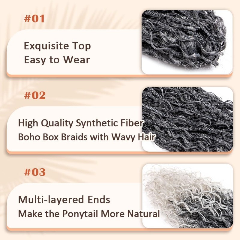 - ❤Material❤: This drawstring ponytail is a new design with boho box braids with wavy hair, are made of light and soft heat-resistant material, which makes the ponytail extension lightweight, perfect feels soft and looks natural. So comfortable was able to wear it daily.