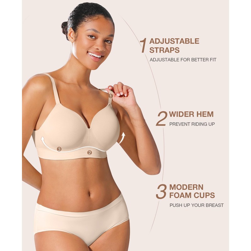 Lover-Beauty Wireless Bras for Women Push Up, Seamless Bralettes Full Coverage with Support, Comfortable Everyday T-Shirt Bra no Underwire