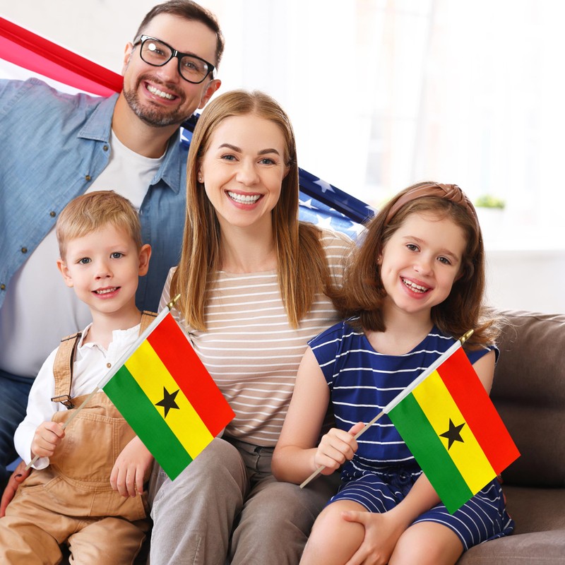 LoveVC 12Pcs 8×12 Inch Ghana Flags Small Ghanaian Flag on Wood Stick Mini Handheld Flags Decorations