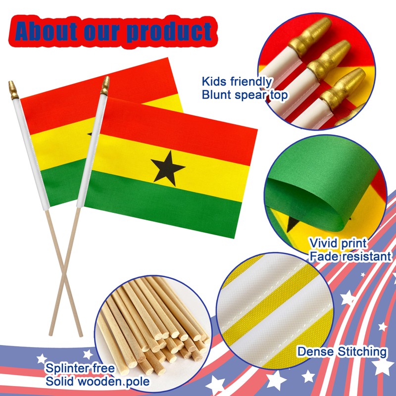 - NOTE - Our Ghana flags and poles are separated and you need to assemble it by yourself,17.5"wooden stick,longer than most flagpoles of the same size countries flag, it is more suitable for waving or inserting into the ground.