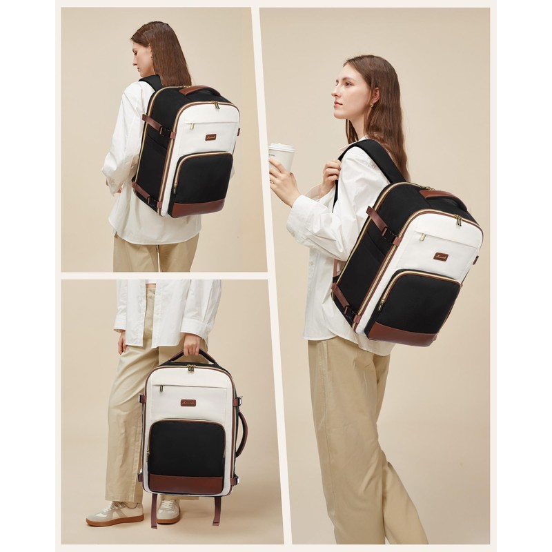 LOVEVOOK Hand Luggage Backpack, 17.3 Inch Backpack Hand Luggage Airplane, Large Travel Backpack Women's Splash Waterproof, 40L Travel Backpack for Travel and Business, Holiday Must Haves - Black Beige