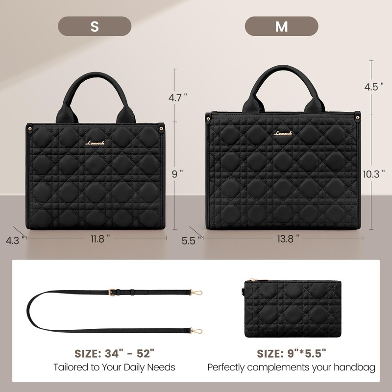 - PERFECT SIZE: 11.8"*4.3"*9"(S), 13.8"*5.5"*10.3"(M). Handle height 4.7 inches. The adjustable shoulder strap extends to 22.24 inches, making it perfect for carrying or slinging over the shoulder