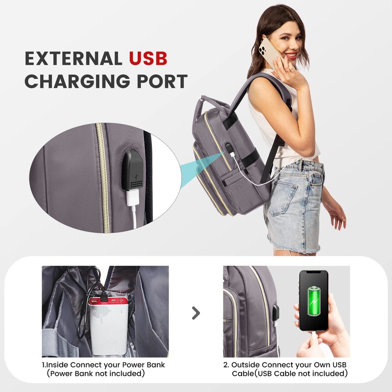 LOVEVOOK Womens Backpack,15.6 Inch Laptop Backpack for Work Travel, Large Capacity Work Backpack for Teacher Nurse, Computer Bag with USB Charging Port.Grey Purple.