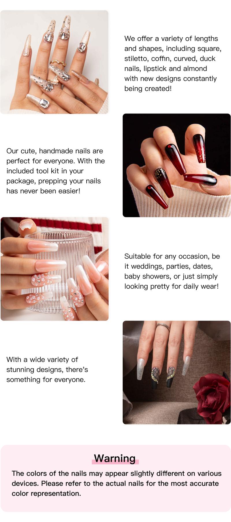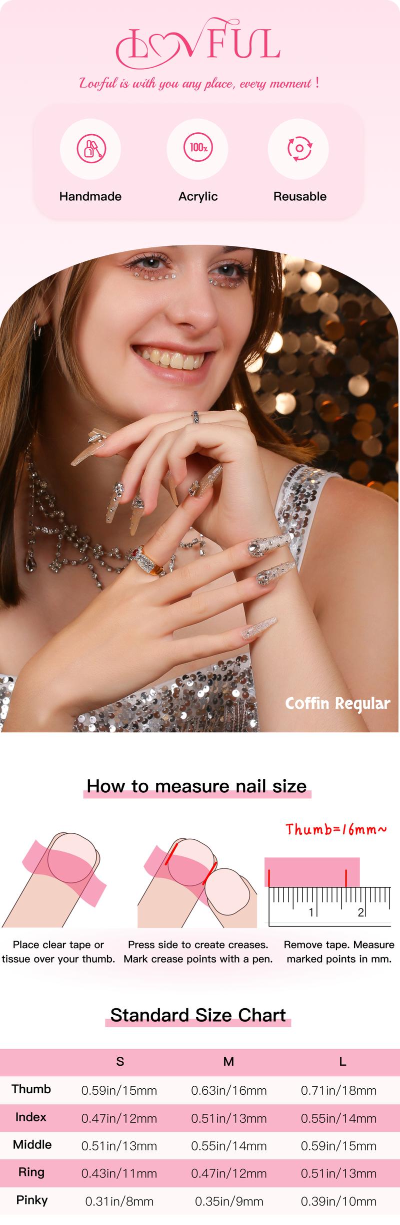 Tip: Ensure you measure your nail bed and verify nail length before buying. We appreciate your understanding for any purchase discrepancies.