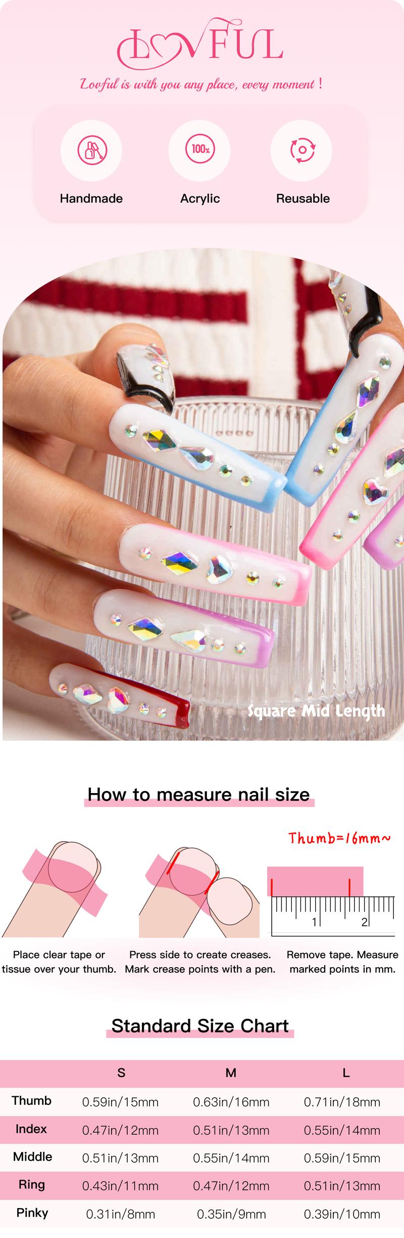 Tip: Ensure you measure your nail bed and verify nail length before buying. We appreciate your understanding for any purchase discrepancies.