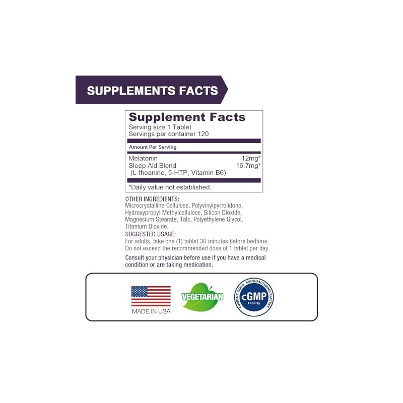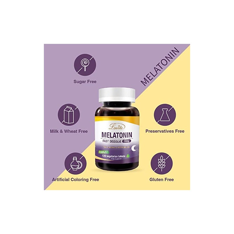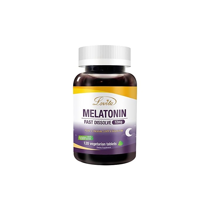 Lovita Melatonin 12 mg Fast Dissolve Tablets, Exclusive Formula with Vitamin B6, L-Theanine and 5-HTP 120 Tablets