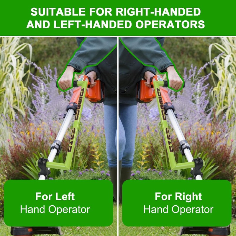 - Ultimate Ergonomic Comfort: Upgraded weed eater handle extension to maximize your gardening comfort. It's ergonomically designed to reduce back stress and attaches directly to the mower's shaft, providing greater leverage and allowing you to maintain an upright position for easy maneuvering and lifting
